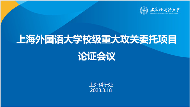 近日,为进一步提升我校科研的总体实力,切实有效落实有组织科研的工作部署,校科研处在虹口校区国际会议中心举办了2023年度校级重大攻关委托项目论证会。会议由校长助理胡开宝教授致辞,科研处潘鸣威副处长主持。